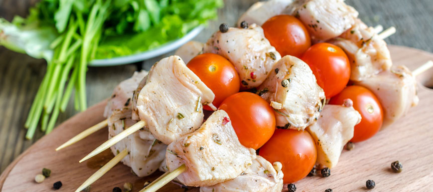 Grill de spiesen nu op de barbecue, grillplaat of in een koekenpan.