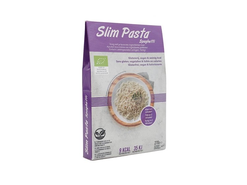 Slim Pasta Spaghetti is een vet-, gluten- en suikervrij spaghetti. Deze pasta bevat maar 9 kcal per 100 gram en is daarmee geschikt in veel diëten. Je mag Slim Pasta Spaghetti ook gebruiken tijdens de Biohcg Original kuur.