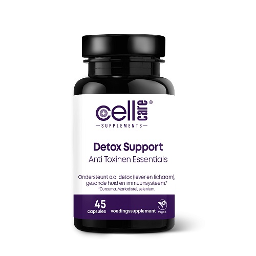 Detox Support - Anti Toxinen van CellCare is een supplement ter ondersteuning van je lever het het detoxproces. De capsules bevatten verschillende ingrediënten waaronder mariadistel, curcuma longa, SOD, broccoli en selenium.