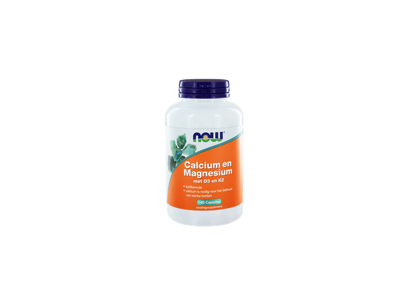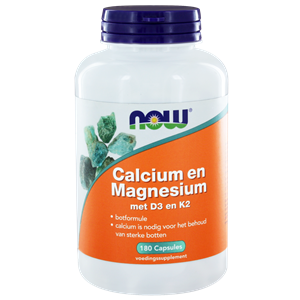 NOW Calcium en Magnesium met D3 en K2 is een mineralencombinatie in de 2:1 verhouding. Het product bevat naast de genoemde mineralen ook vitamine D3 en vitamine K2 als menachinon-4. Onder andere voor het behoud van sterke botten, goede spierwerking en een sterk gebit.