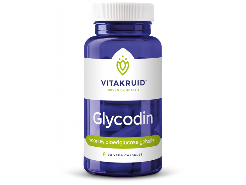 Vitakruid Glycodin is een speciale formule met chroom picolinaat, magnesium tauraat, alfa-liponzuur en biotine. Deze ingrediënten dragen bij aan een normale bloedsuikerspiegel, stofwisseling van koolhydraten, vetten en eiwitten en hebben een gunstige invloed op een normaal energieleverend metabolisme.