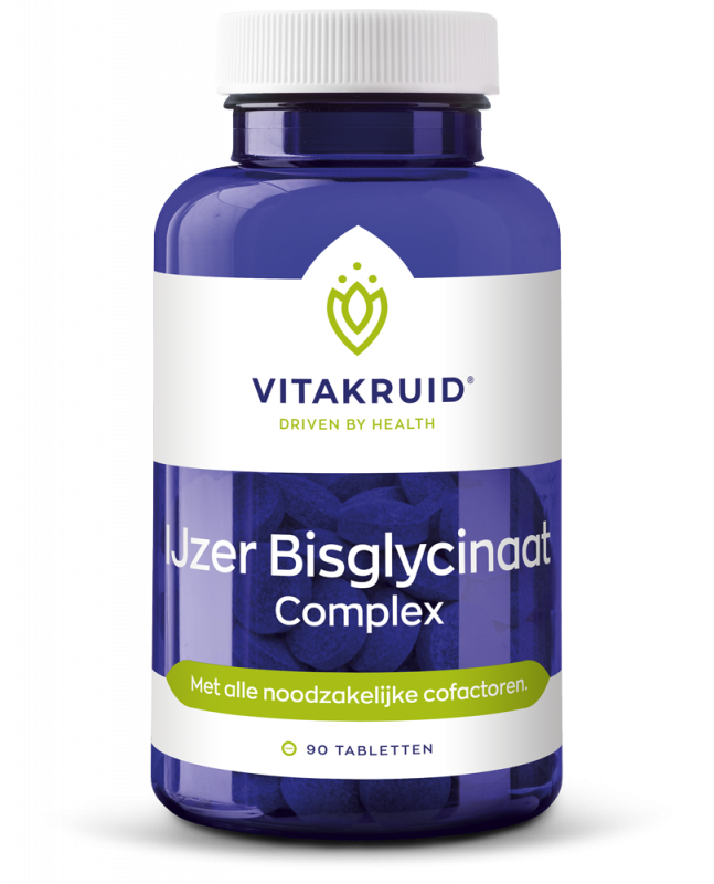 Vitakruid IJzer Bisglycinaat Complex is een compleet IJzer supplement. Het bevat IJzer in bisglycinaat vorm, cofactoren en koper.