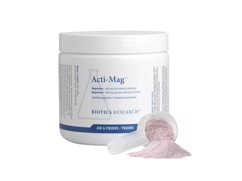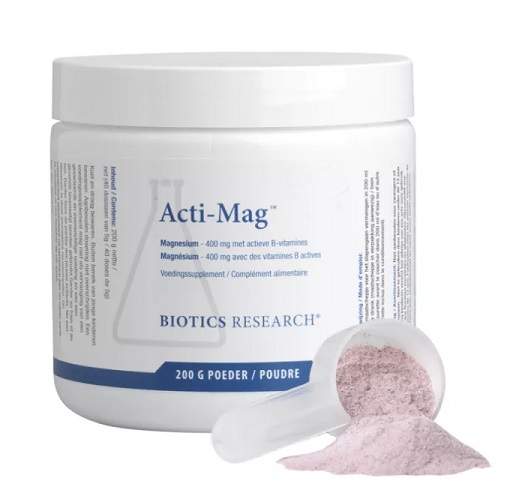 Acti-Mag Plus van Biotics is een magnesium poeder dat is aangevuld met taurine en B-vitamines. Daarnaast bevat Acti-Mag plus ook bietensap en bamboe.