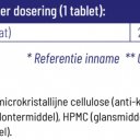 Overige ingrediënten: Magnesiumcitraat, microkristallijne cellulose (anti-klontermiddel), stearinezuur (anti-klontermiddel), HPMC (glansmiddel), glycerol (bevochtigingsmiddel).