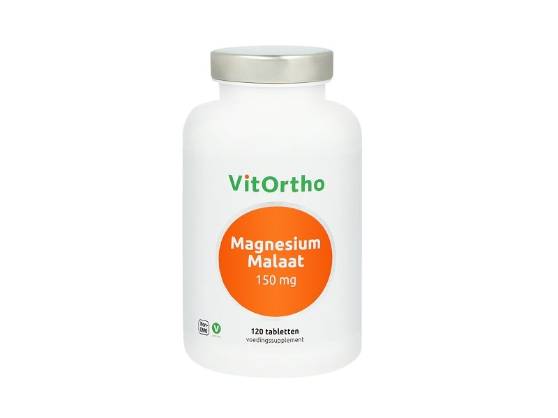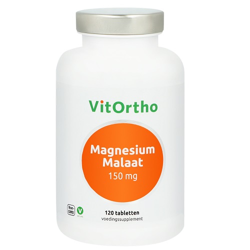 VitOrtho Magnesium Malaat 150 mg per tablet. Magnesium malaat is een goed opneembare vorm van magnesium en is gebonden aan appelzuur. Deze combinatie ondersteunt de energiestofwisseling en helpt vermoeidheid te verminderen. Magnesium is daarnaast belangrijk voor het behoud van soepele spieren, een sterk gebit en een gezond zenuwstelsel.