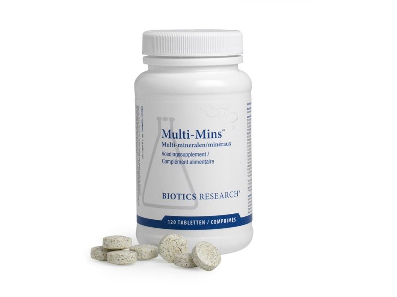 Biotics Multi-Mins is een krachtig en breed Multi Mineralenpreparaat. Naast diverse mineralen bevat het ook enkele bijzondere spoorelementen zoals Vanadium, Rubidium, Borium en Lithium. Multi-Mins is een Biotics Research product.