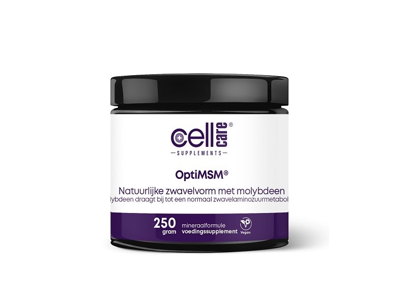 CellCare OptiMSM® onderscheidt zich ten opzichte van andere OptiMSM® producten door de toevoeging van molybdeen. Molybdeen is een essentieel sporenelement dat bij draagt aan een normale zwavelaminozuurstofwisseling. MSM is een zwavelhoudende verbinding en dat maakt het met name gunstig voor diegene die moeite heeft met het verteren van MSM.