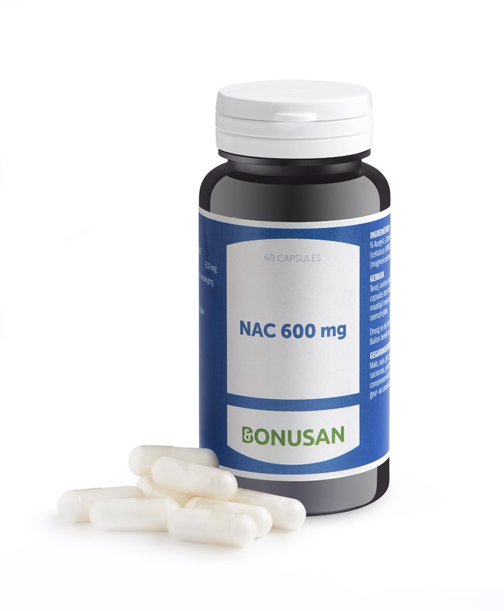 Bonusan NAC 600 mg is een N-Acetyl-L-Cysteïne supplement. Elke capsule bevat 600 mg N-Acetyl-L-Cysteïne (ofwel NAC). Dit is de optimale vorm van het aminozuur. De capsules zijn vegetarisch.