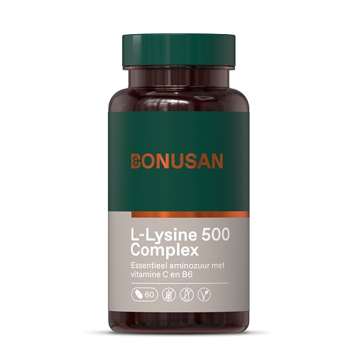 Bonusan L-Lysine 500 Complex bevat 500 mg L-Lysine (als L-Lycine HCI) per tablet. De tabletten zijn aangevuld met Vitamine C en Vitamine B6. Deze extra toevoegingen maken het ook een plusproduct. De 'plus' ingrediënten zorgen voor een betere opname en werking.
