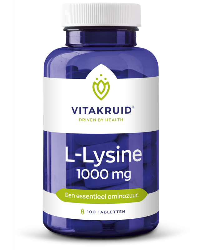 Vitakruid L-Lysine bevat een hoge dosering van 1000 mg L-Lysine per tablet. L-Lysine is een essentieel aminozuur. Dat houdt in dat we volledig afhankelijk zijn van onze voeding. Want ons lichaam is niet in staat om lysine aan te maken. We vinden Lysine vooral in dierlijke producten. Eet je weinig tot geen dierlijke producten? Dan kan een L-Lysine supplement een gewenste aanvulling zijn.