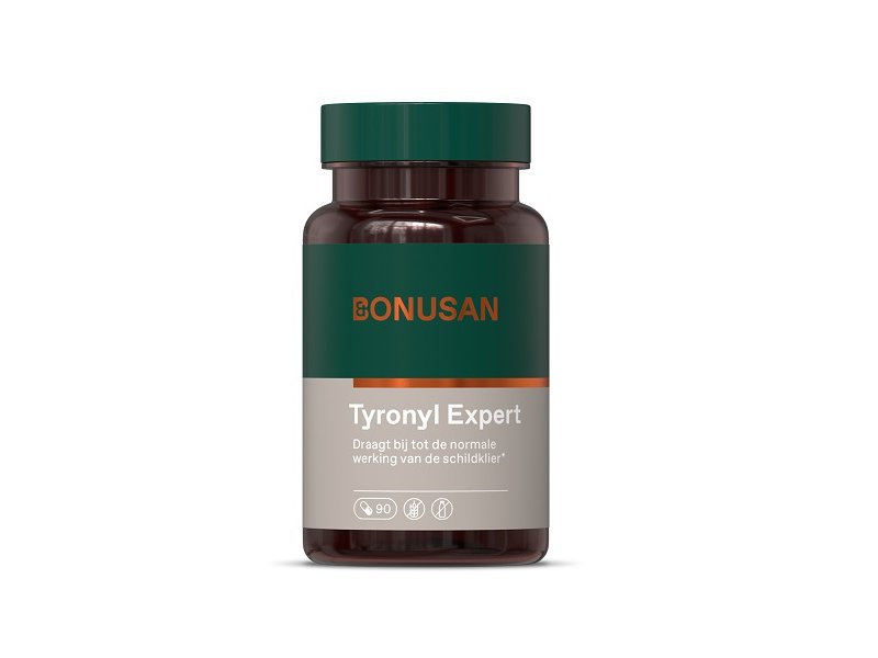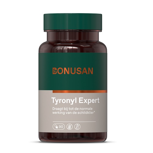 Bonusan Tyronyl Expert is een schildklierformule met jodium en selenium. Deze twee mineralen leveren een bijdrage aan de normale werking van de schildklier en zijn essentieel voor de productie van schildklierhormonen.