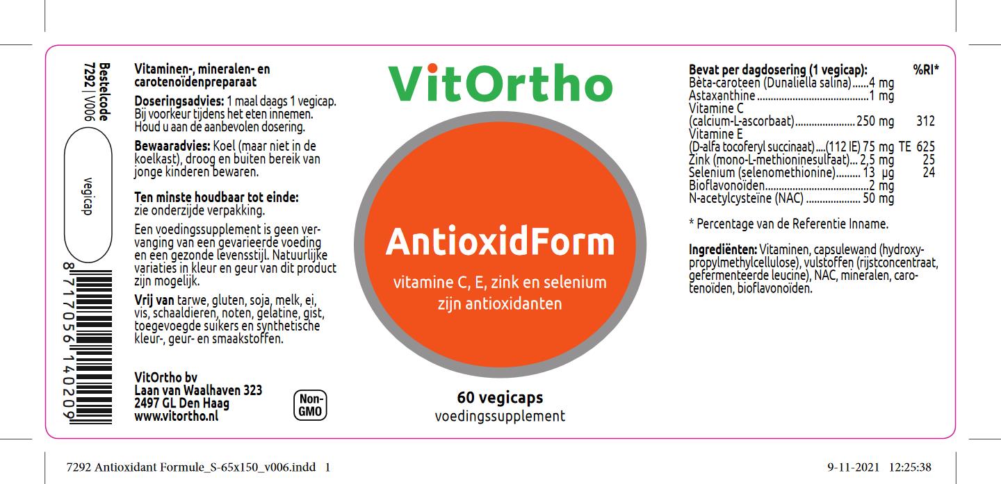 Vitortho AntioxidForm heeft een breed spectrum aan antioxidanten voor het behoud van gezonde cellen en weefsel en ter bescherming tegen vrije radicalen.