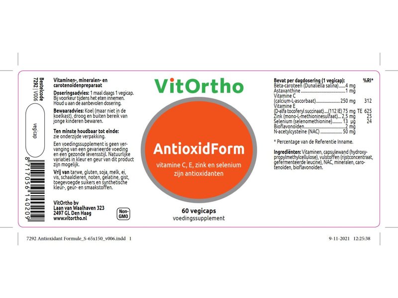 Vitortho AntioxidForm heeft een breed spectrum aan antioxidanten voor het behoud van gezonde cellen en weefsel en ter bescherming tegen vrije radicalen.