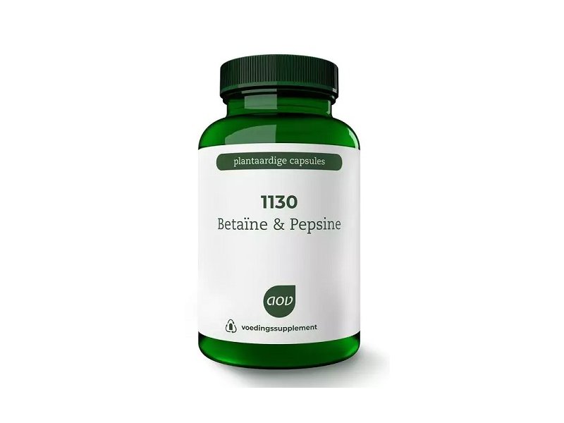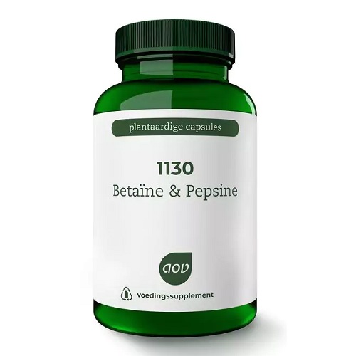 AOV 1130 Betaïne en Pepsine is een supplement met de twee enzymen betaïne en pepsine (ook wel peptase). Deze twee enzymen komen in ons lichaam voor.