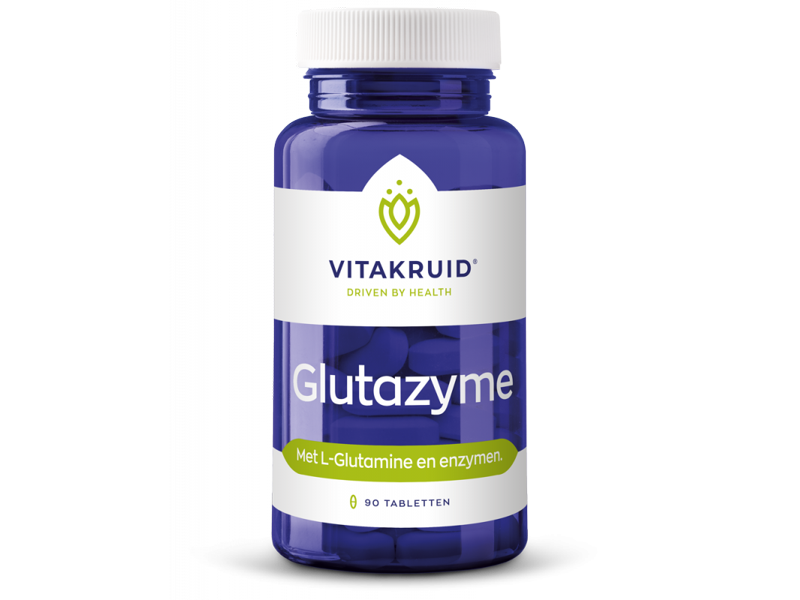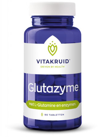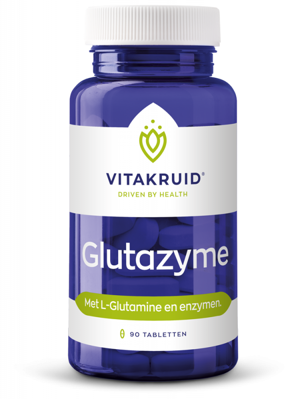 Glutazyme van Vitakruid is een complexformule van 6 verschillende spijsverteringsenzymen en L-Glutamine. De 6 enzymen in de tabletten zijn: