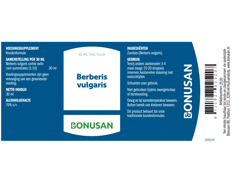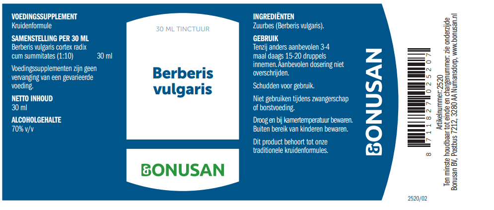 Overige ingrediënten: Zuurbes (Berberis vulgaris). Alcoholpercentage 70% v/v.