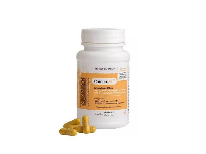 CurcumRX van Biotics is een Kurkuma/Curcuma supplement met een mirco-emulsie met vertraagde afgifte. Het bevat 112,5 mg actieve curuminoïden per capsule en is vrij van chemische solventen. Deze gepatenteerde emulsietechniek heeft de hoogste biologische beschikbaarheid.