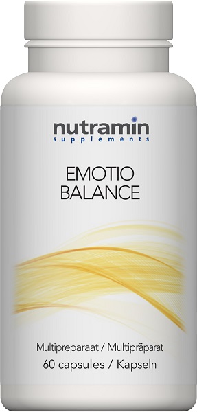 Emotio Balance van Nutramin bevat verschillende kruiden waaronder: rozewortel, slaapmutsjeskruid en gotu kola, speciaal ter ondersteuning van de emotionele balans. Daarbij bevat het product ook vitamine B6 en zink.