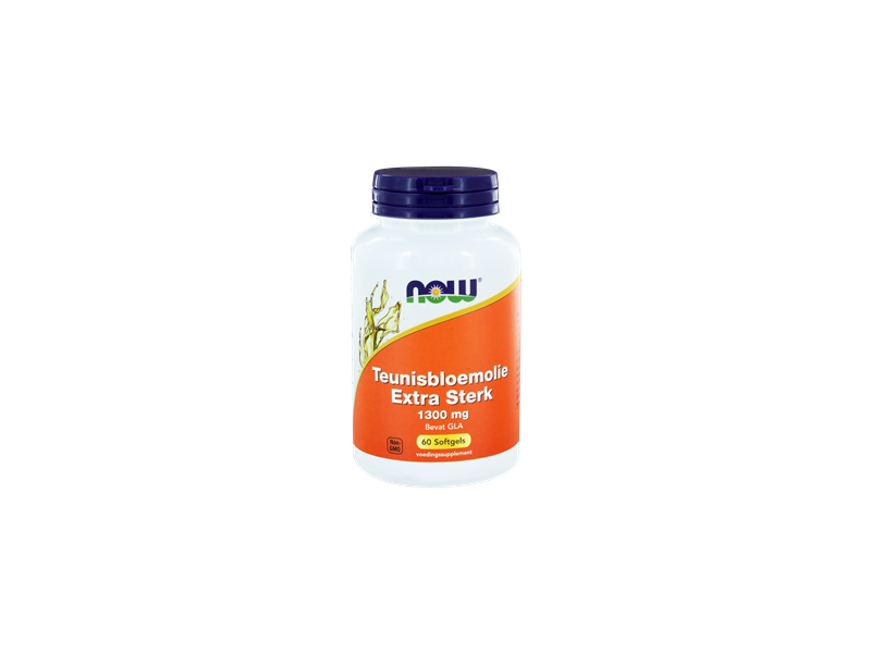 Now Teunisbloemolie Extra Sterk is een hoog gedoseerde Teunisbloemolie capsule. Het bevat maar liefst 1300 mg Teunisbloemolie per softgel. Teunisbloemolie bevordert een normale en regelmatige menstruatie en voedt de huid van binnenuit.