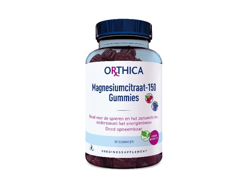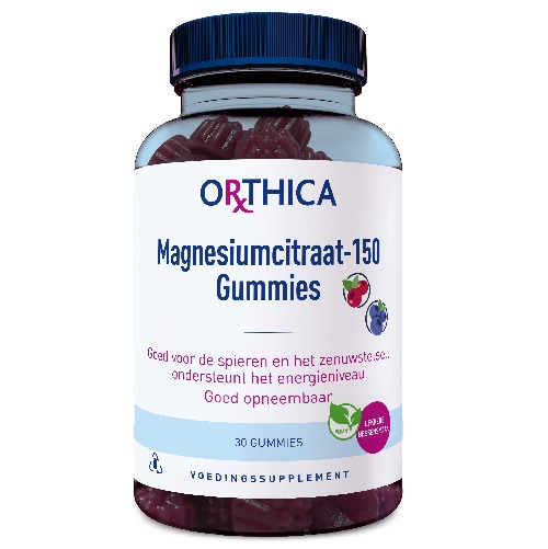 Orthica Magnesium Citraat gummies zijn smakelijke en makkelijk in te nemen gummies. Ze bevatten een mooie dosering van 150 mg per gummie en hebben een bessensmaak. Je kunt gewoon kauwen of zuigen op de gummies. Ideaal voor diegene die moeite heeft met het slikken van tabletten of capsules.