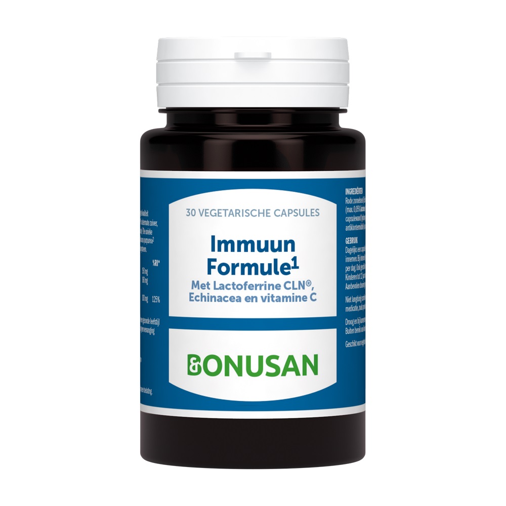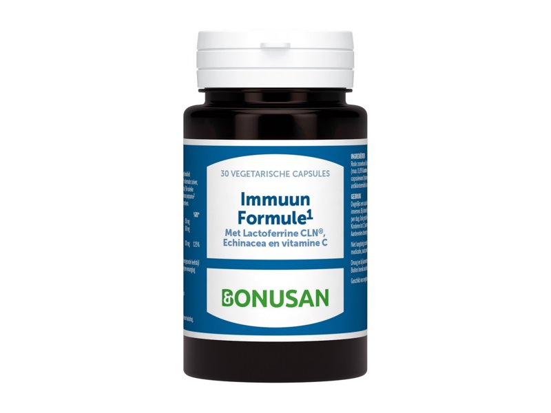 Bonusan Lactoferrine Immuun Formule ondersteunt de afweer van het lichaam. Deze formule bevat 150 mg lactoferrine, vitamine C en Echinacea Purpurea (rode zonnehoed).