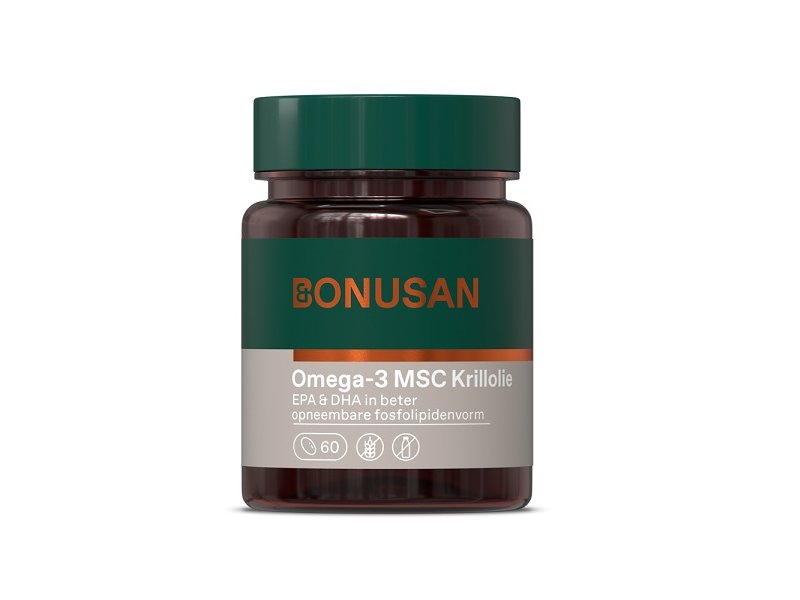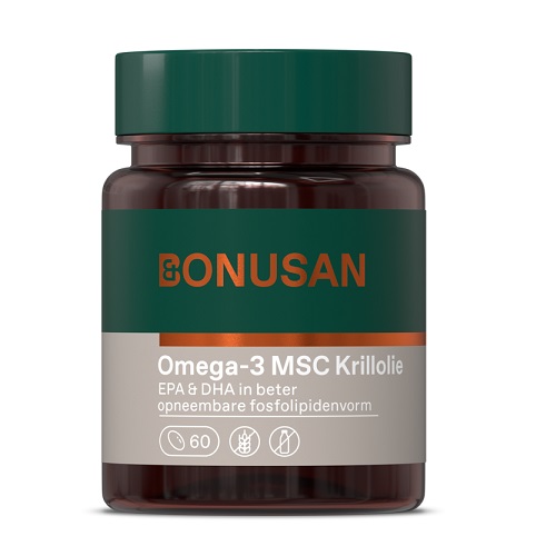 De Omega 3- Krillolie van Bonusan is rijk aan de essentiële vetzuren EPA en DHA. De krill die gebruikt wordt voor deze krillolie is afkomstig van een duurzame vangst (MSC gecertificeerd).