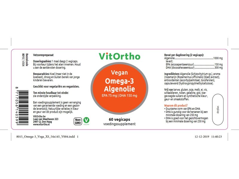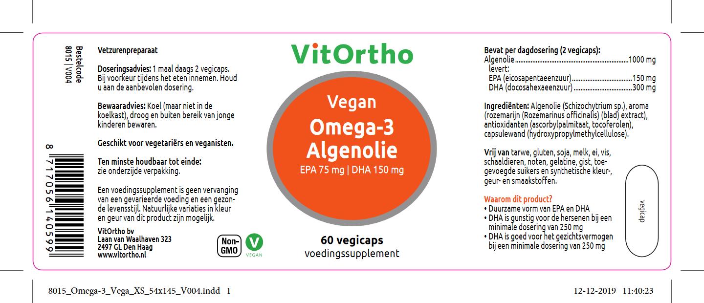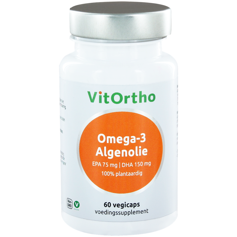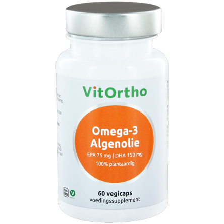 Omega 3 algenolie van Vitortho is 100% plantaardig en geschikt voor vegetariërs en veganisten. Dit product bevat een duurzame vorm van EPA en DHA. De Omega 3 vetzuren zijn afkomstig van algen.