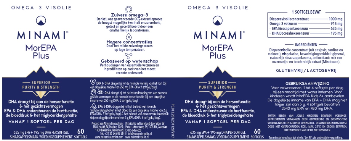 MorEPA Plus is een product van Minami. Dit is een internationaal visolie-merk. Minami wordt in Nederland gedistribueerd door Vitals. Het productieproces wordt volgens een gepatenteerde wijze uitgevoerd. Dit zorgt voor een hoge dosering Omega 3 en een optimale zuiverheid. De CO2 extractie vindt uitsluitend plaats bij lage temperaturen waardoor de gunstige eigenschappen bewaard blijven. Tijdens het productieproces worden er geen chemische oplosmiddelen gebruikt.