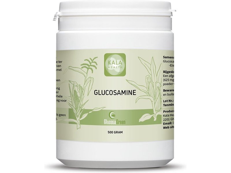 Kala Health Glucosaminepoeder bevat glucosamine van het merk GlucosaGreen®. GlucosaGreen® kenmerkt zich door een zuiverheid van 98%. De vorm waarin de glucosamine wordt aangeboden is de HCL-vorm. Deze vorm levert de hoogste hoeveelheid pure glucosamine op, namelijk 82%.