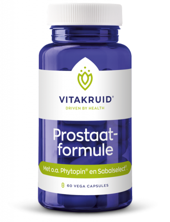 Vitakruid Prostaatformule bevat diverse vitamines, mineralen en kruiden ter ondersteuning van de prostaat. Zo bevat Vitakruid het Zaagpalm extract (SabalSelect®) dat goed is voor de prostaat en ondersteunt het goed blijven plassen**.