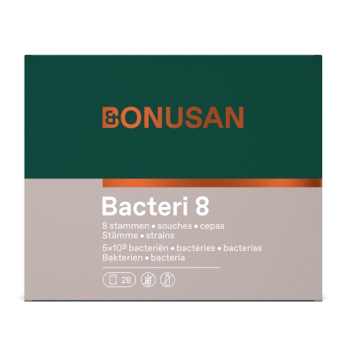 Bacteri 8 (verbeterde versie van Bonusan Darmocare) biedt een brede mix van bacteriestammen. Zo bevat dit product maar liefst 8 verschillende stammen. Bonusan heeft de stammen zorgvuldig geselecteerd op hun overlevingskracht in het spijsverteringskanaal. Bacteri 8 bevat 3 soorten bifidobacteriën en 5 soorten lactobacillen (melkzuurbacteriën).
