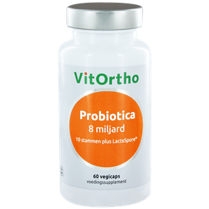 VitOrtho Probiotica 8 miljard probiotica tabletten bevatten, zoals de naam al zegt, minimaal 8 miljard kolonievormende eenheden. Het merendeel (3 miljard) is afkomstig van bacillus coagulans lactospore. De andere 5 miljard is afkomstig uit een mix van verschillende probiotische bacteriën.