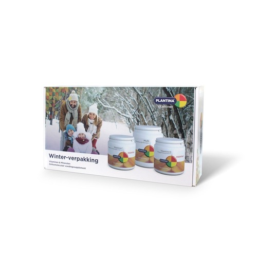 Plantina Winterpakket met de Plantina multivitamine, Vitamine C en Vitamine D.