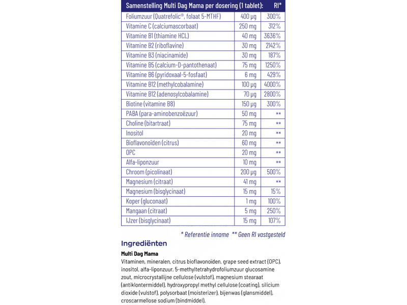 Ingrediënten Vitakruid Multi Dag Mama