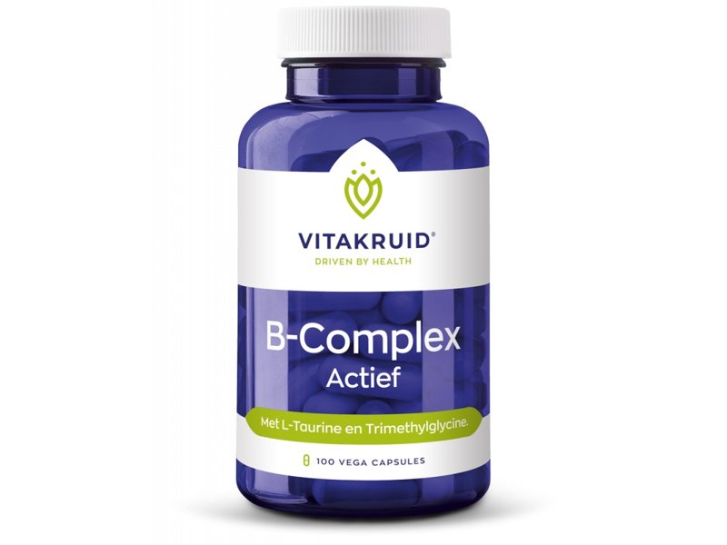 Vitakruid B-Complex Actief bevat de 8 verschillende B-vitamines in een hoge dosering. Als extra toevoeging bevat het de methyldonoren trimethylglycine, choline en l-taurine. Deze methylering zorgt voor de vorming van extra energie*.