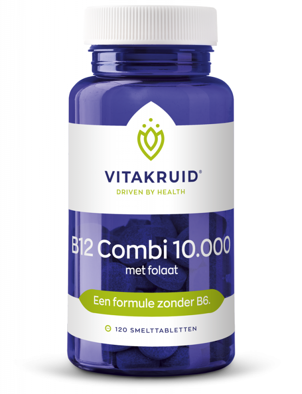 Vitakruid B12 Combi 10.000® met Folaat bevat een hoogwaardige combinatie van B12 en folaat. De tabletten bevatten de best opneembare vormen van B12: methylcobalamine en adenosylcobalamine. Dit zijn beide biologisch actieve vormen.