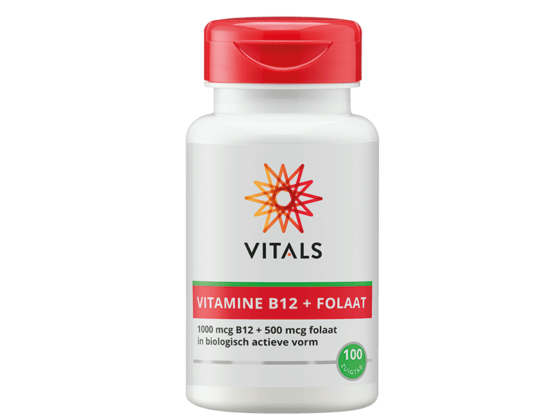 Vitals Vitamine B12 + Folaat bevat een hoge dosering B12 en folaat van de biologisch actieve vorm methylcobalamine, adenosylcobalamine en 5-MTHF. Het zijn smaakvolle zuigtabletjes waarvan de ingrediënten worden opgenomen door het mondslijmvlies.