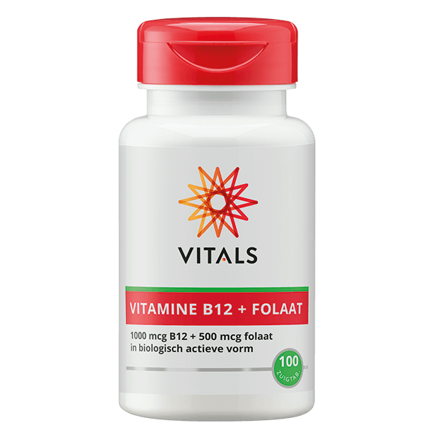 Vitals Vitamine B12 + Folaat bevat een hoge dosering B12 en folaat van de biologisch actieve vorm methylcobalamine, adenosylcobalamine en 5-MTHF. Het zijn smaakvolle zuigtabletjes waarvan de ingrediënten worden opgenomen door het mondslijmvlies.