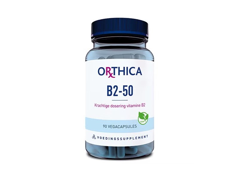 Orthica B2-50 bevat een krachtige dosering van 50 mg riboflavine (Vitamine B2) per capsule. Vitamine B2 biedt een brede ondersteuning voor je lichaam. Zo draagt het bij tot de vermindering van vermoeidheid, werkt het als antioxidant en is het goed voor de huid, slijmvliezen en gezichtsvermogen.