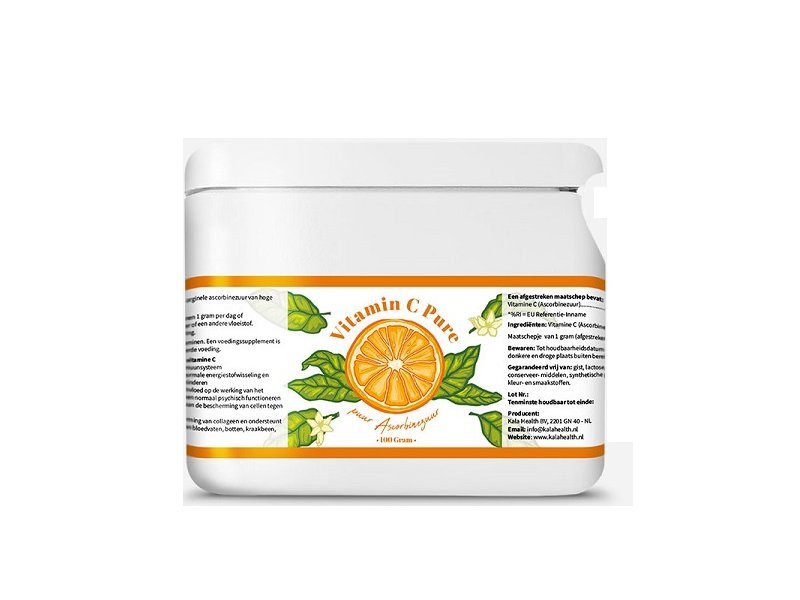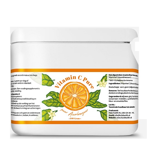 Het Vitamine C poeder van Kala Health komt voor in de vorm van L-ascorbinezuur. Het poeder heeft een gunstige prijs-kwaliteitsverhouding.