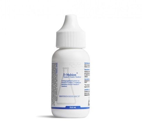 D-Mulsion van Biotics bevat vitamine D3 druppels (cholecalciferol). Vitamine D3 draagt onder andere bij tot de normale werking van het immuunsysteem, instandhouding van de botten, spieren en normale calciumgehalten in het bloed.