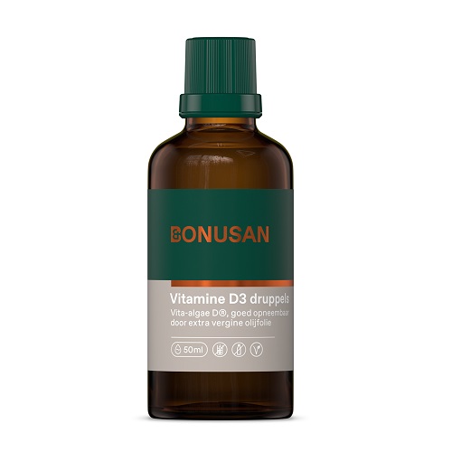 Bonusan Vitamine D3 druppels voeg je gemakkelijk toe aan je voeding of vloeistof. Voor een betere opneembaarheid bevat dit product ook vierge olijfolie. Elke druppel is goed voor 5 mcg vitamine D3 (cholecalciferol).