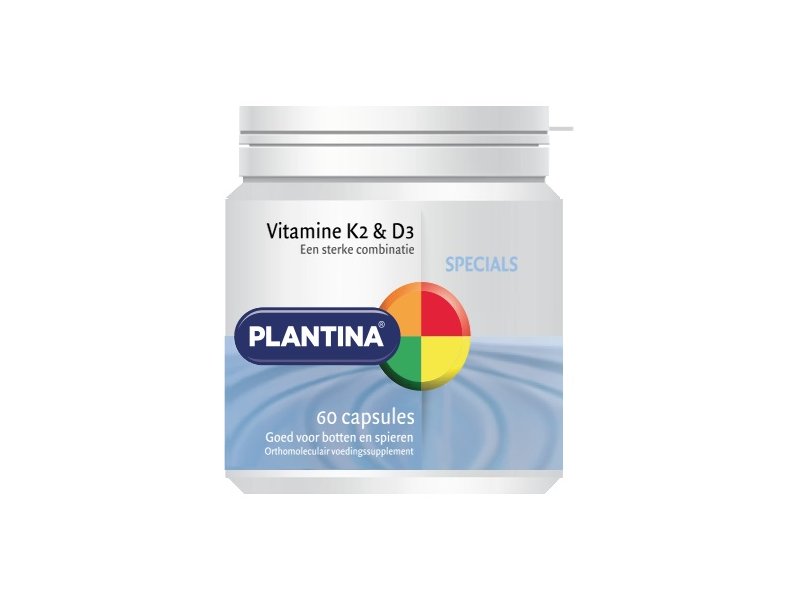 Plantina Vitamine K2 en D3 bevat een samenstelling K2 en D3 die elkaar versterken. Vitamine D3 is onder andere goed voor de kalkhuishouding, botten, spieren, tanden en de weerstand. Vitamine K2 ondersteunt de bloedstolling en de botten.