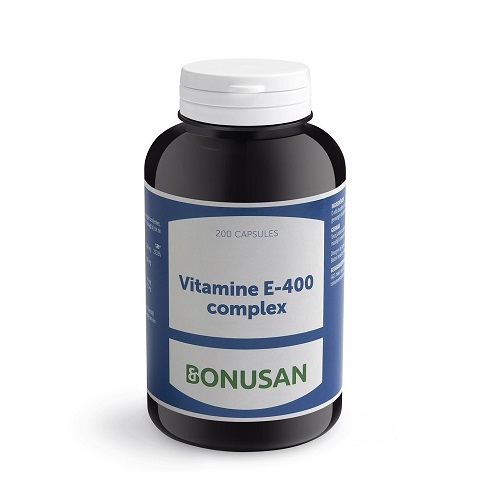 Bonusan Vitamine E-400 complex bevat de 4 tocoferolen (alfa, beta, gamma en delta). Hierbij is d-alfa-tocoferol extra hoog gedoseerd (400IE). De 4 tocoferolen zijn aanwezig in de natuurlijke d-vorm. De capsules bevatten extra vierge olijfolie wat zorgt voor een betere opname.