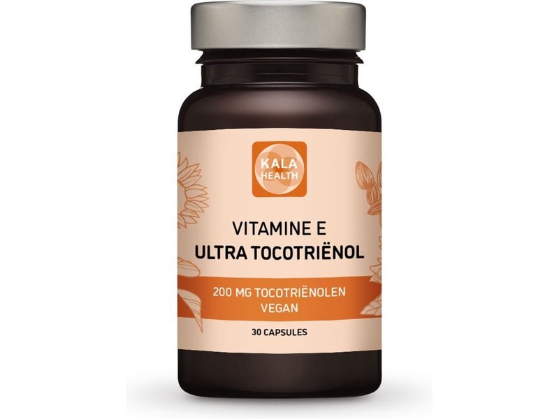 Kala Health Ultra Tocotriënol Vitamine E is een tocotriënolencomplex met de 4 tocotriënolen in een hoge dosering. Geschikt voor diegene die de specifieke tocotriënolen in een hoge dosering zoekt. Vitamine E Ultra Tocotriënol bevat 71 mg D-alfa-tocotriënol, 8 mg D-beta-tocotriënol, 23 mg D-delta-tocotriënol en 103 mg D-gamma-tocotriënol.