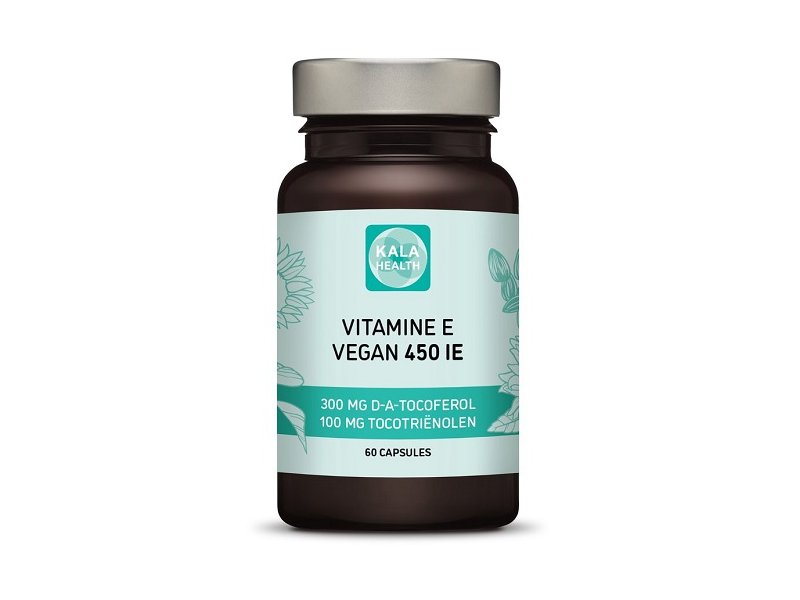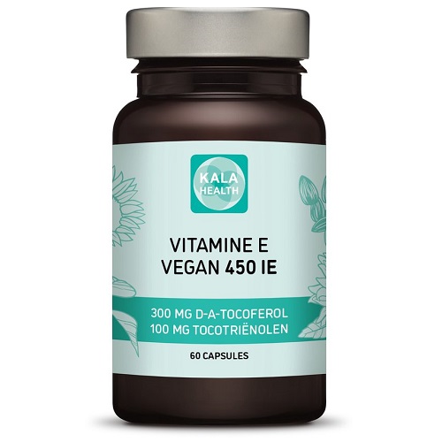 Kala Health Vitamine E Strong 450 IE is het hoogst gedoseerde Vitamine E supplement uit de Vitamine E lijn van Kala Health. Elke capsule levert 300 mg Vitamine E (waarde 450 IE). Dit product bevat het hele spectrum tocotriënolen en een hoge dosering d-alfa-tocoferol.