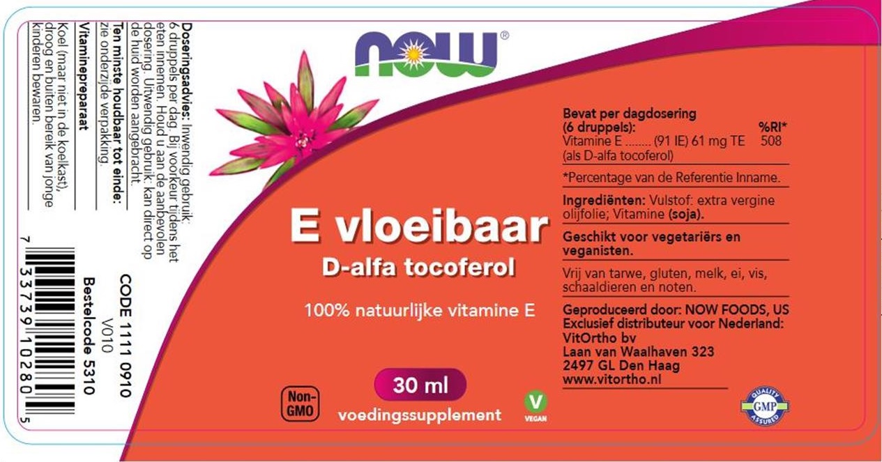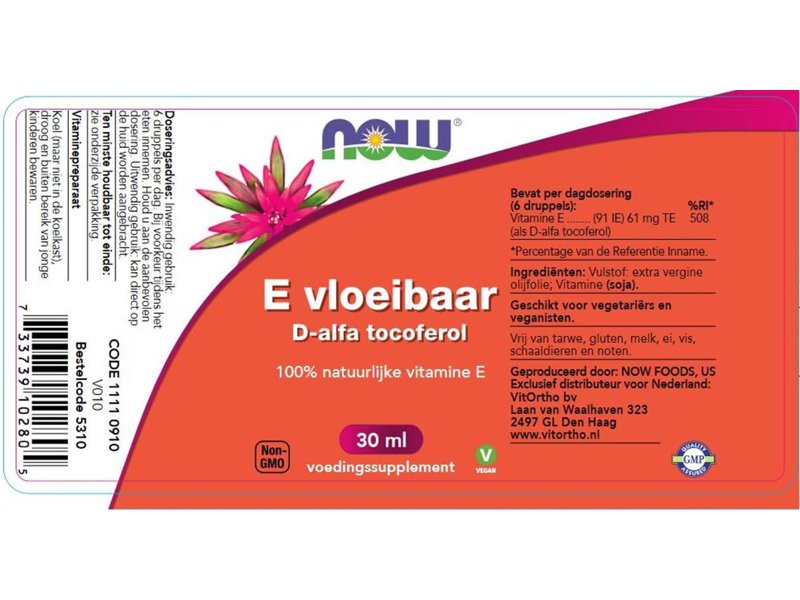 Deze 100% natuurlijke Vitamine E (D-alfa-tocoferol) bevat per dagdosering 61 mg ofwel 91IE. Het zit in extra vergine olijfolie wat goed is voor de opname door het lichaam.