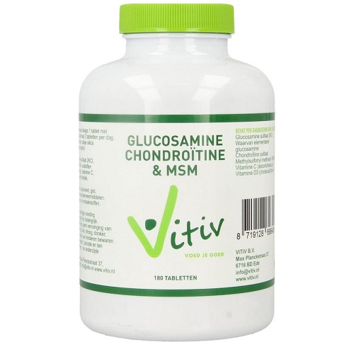 Vitiv Glucosamine, Chondroïtine en MSM is een hoogwaardig supplement met aanvulling van Vitamine C en Vitamine D. Vitamine C speelt een belangrijke rol voor het kraakbeen en Vitamine D is goed voor de botten.